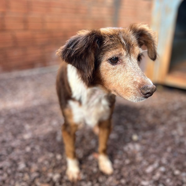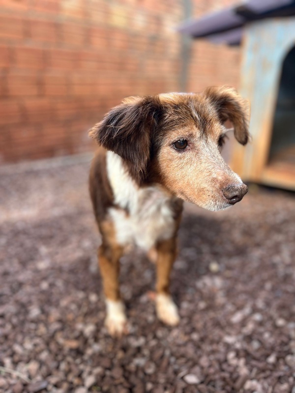 Minha história começou com um susto grande... fui atropelado na avenida Egydio Munaretto e fiquei ali, estirado no meio da estrada, sentindo muita dor e sem entender o que estava acontecendo. Até que uma pessoa de bom coração me tirou dali e me colocou no gramado, fora de perigo. Eu estava muito debilitado, com dores fortes, e precisei passar por um momento muito difícil: tive que amputar a minha patinha.