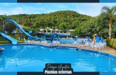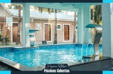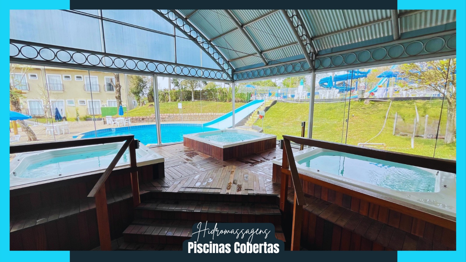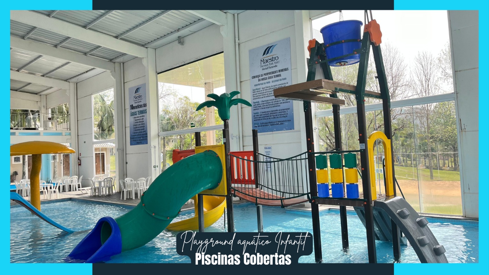 💦 São mais de 1.000 m² de piscinas cobertas com águas quentinhas, playground aquático, escorregadores e o incrível Tubogás, garantindo muita aventura para a garotada.