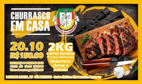 “Churrasco em Casa” para retirada será promovido no domingo (20) pelo CTG Estância da Liberdade