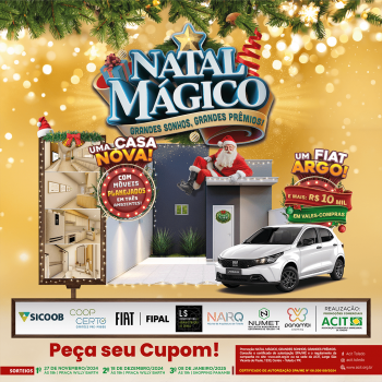 A campanha ‘Natal Mágico, Grandes Sonhos, Grandes Prêmios’ é uma realização da ACIT, com os parceiros Ls Construtora, Fipal Veículos, Shopping Panambi, Sicoob Meridional, Cartões Coopcerto, Núcleo de Marcenarias e Estofarias e Núcleo De Arquitetura.