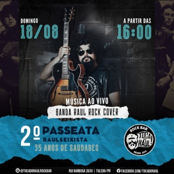 A chama do Maluco Beleza continua acesa em Toledo, a cidade se prepara para celebrar o legado do eterno Raul Seixas na "2ª Passeata Raulseixista". O evento, marcado para o dia 18 de agosto, celebra a obra do cantor que completaria 79 anos em 2024 e relembra os 35 anos de sua partida. A concentração ocorrerá às 16h00 em frente ao Toca do Raul Rock Bar, localizada na Rua Rui Barbosa, Nº 2.630, em frente à rodoviária da cidade.
