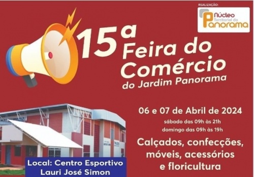 Neste fim de semana, nos dias 06 e 07 de abril, será realizada a 15ª Feira do Comércio do Jardim Panorama, em Toledo. O evento ocorrerá no Centro Esportivo Lauri José Simon, localizado na Avenida Senador Attílio Fontana, Nº 3.055.