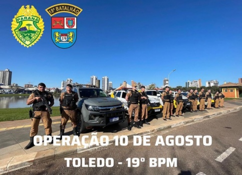 Na tarde de terça-feira, 01º de agosto de 2023, o 19º Batalhão de Polícia Militar de (19º BPM) realizou o lançamento da Operação 10 de Agosto, em Toledo. O lançamento da Operação ocorreu no Parque Ecológico Diva Paim Barth (Lago Municipal) e contou com a presença de autoridades militares e civis, além de representantes da comunidade local.