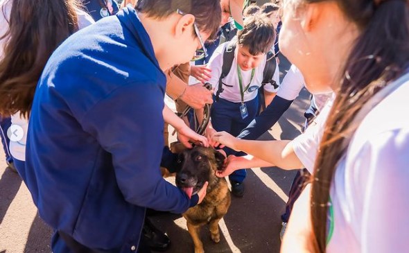 Acompanhados pelo 2º sargento - PMRR Marques e pela pedagoga Maria José, os estudantes participaram de brincadeiras como cama elástica, xadrez gigante e cabo de guerra. A programação também contou com a oportunidade de conhecer de perto as instalações do Batalhão, dar uma volta na viatura policial – acionando luzes e sinais sonoros – e aprender sobre os materiais e viaturas utilizados pelas equipes da Rondas Ostensivas Tático Móvel (Rotam). Para encerrar o dia, os alunos assistiram a uma demonstração de faro com o cão policial Zeus, da equipe Rotam Operações com Cães.