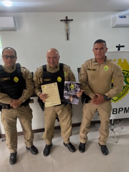 Durante o evento, o homenageado recebeu um Elogio Individual, o livro funcional que reúne o registro de toda a sua trajetória na PMPR e Moções de Aplauso concedidas tanto pelo Poder Executivo quanto pelo Legislativo Municipal de Diamante do Oeste.