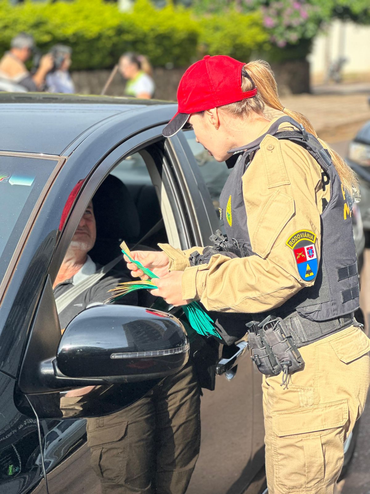 Durante as abordagens, os motoristas receberam orientações sobre comportamentos seguros, uso do cinto de segurança, respeito aos limites de velocidade, entre outros temas fundamentais para a segurança viária.