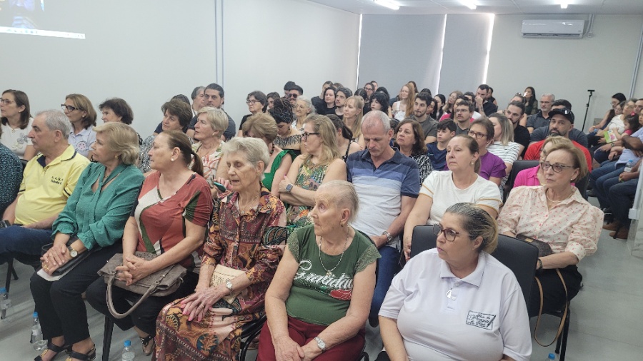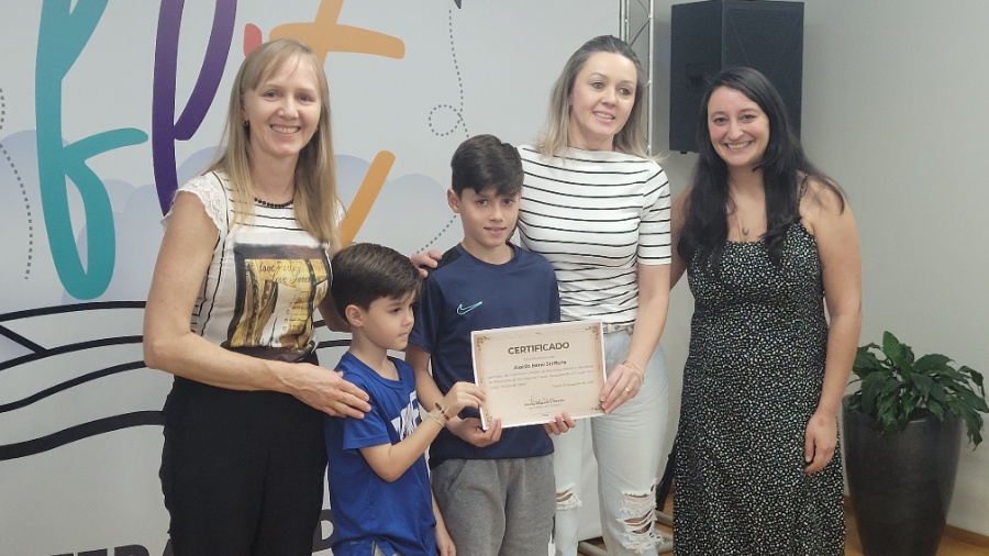 Em seguida, foi a vez de conhecer os vencedores do 10º Concurso de Crônicas e Poesias Edy Braun, que recebeu a inscrição de 149 trabalhos oriundos de todo o Paraná, sendo 44 crônicas, 94 poesias da categoria adulto e 11 poesias da categoria juvenil – somando todas as edições, 1.597 já participaram do concurso. “O nome da minha poesia remete ao grande continente que existia antes de haver o distanciamento das placas tectônicas, há milhões de anos. Por meio dela, quis expressar que a arte está em todo o lugar”, explicou a vencedora da categoria poesia adulto do concurso, Elis Regina Basso, residente em Toledo, autora de “Pangeia”.