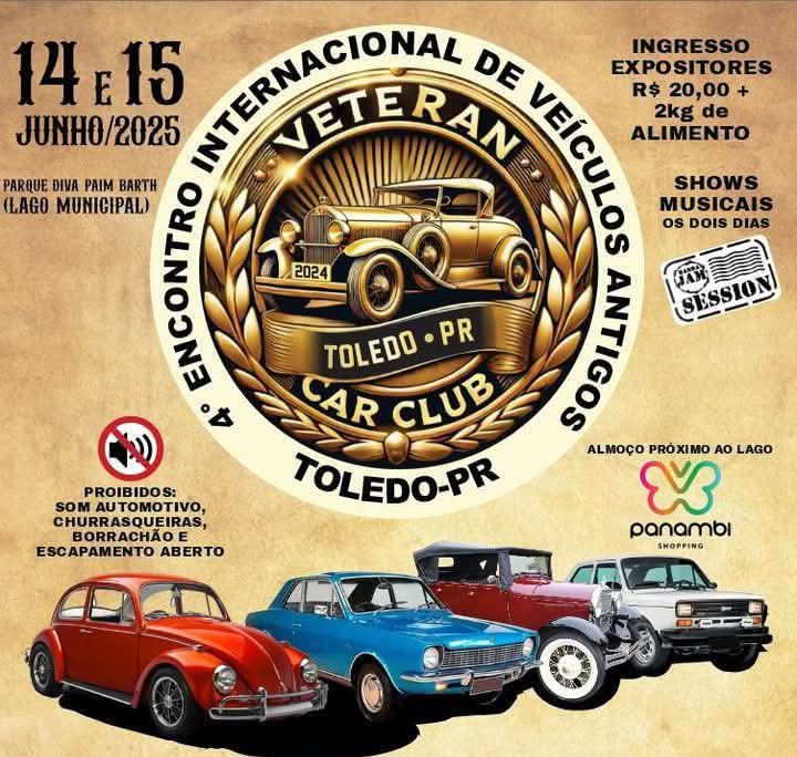A contagem regressiva para o maior evento de veículos antigos da região já começou. Em 30 dias, o Veteran Car Club de Toledo realizará o 4º Encontro Internacional de Veículos Antigos, nos dias 14 e 15 de junho, no Parque Ecológico Diva Paim Barth (Lago Municipal).