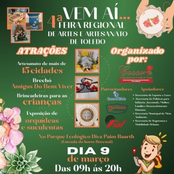 4ª Feira Regional de Artes e Artesanato de Toledo será no domingo (09)