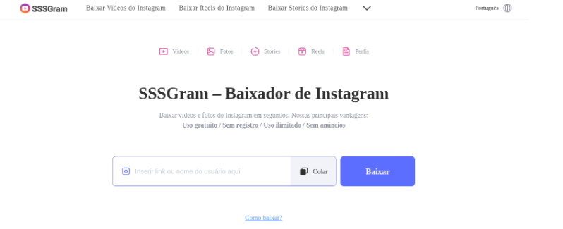 O gratuito SSSGram é uma das ferramentas mais populares para salvar vídeo e baixar foto do Instagram em qualidade HD. Ele funciona completamente online, sem necessidade de instalar programas ou extensões — basta acessar o site, colar o link do Reel, vídeo ou foto e clicar em Baixar. O SSSGram é compatível com navegadores de computador, tablet e celular, tornando-se uma opção prática e versátil para todos os usuários.