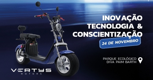 Além de oferecer um produto de qualidade, também prezamos por conscientizar nossos clientes e toda população adepta ao uso de scooters e patinetes elétricos, com isso, a Vertys Motors irá promover um evento gratuito de conscientização sobre uso de equipamentos de segurança para scooters e patinetes elétricos, dia 24 de novembro, no Parque Ecológico Diva Paim Barth (Lago Municipal). A partir das 14h00, a iniciativa, realizada em parceria com a Guarda Municipal (GM) e a Polícia Militar (PM), busca informar e conscientizar os participantes sobre a segurança no trânsito e o uso responsável desses veículos.