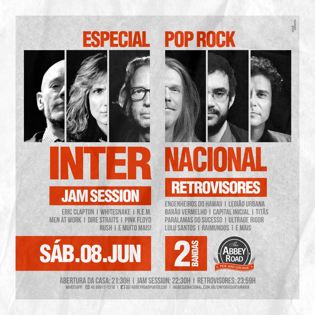 Neste sábado, dia 08 de junho, o Abbey Road Pub em Toledo trará duas bandas que garantirão uma noite repleta de pop rock. A banda Jam Session apresentará um repertório com clássicos internacionais de artistas renomados como Eric Clapton, Men At Work, Pink Floyd e muito mais. Já a banda Retrovisores tocará favoritos nacionais de grupos como Engenheiros do Hawaii, Legião Urbana, Capital Inicial, Raimundos, entre outros.