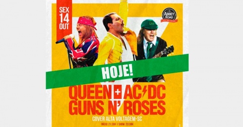 Sextou! E você aí querido leitor, já sabe o que vai fazer hoje? Bora curtir as lendas do rock'n roll no Abbey Road Pub de Toledo? Vai ser uma noite linda, para ouvir, cantar e dançar as inesquecíveis canções do QUEEN, AC/DC e GUNS N' ROSES com a banda ALTA VOLTAGEM – SC.