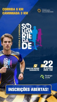 A 2ª Corrida da Solidariedade, que será realizada em Cascavel no dia 22 de novembro, está com inscrições abertas. O evento esportivo tem caráter totalmente beneficente, sendo a renda revertida para projetos sociais que transformam a vida de pessoas em vulnerabilidade social.