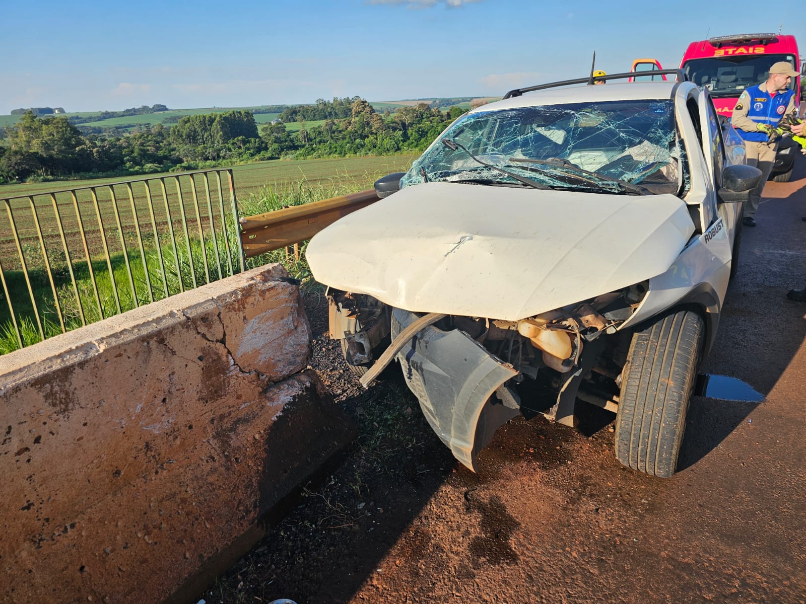Conforme apurado no local pela equipe de reportagem do Toledo News, o condutor de uma picape VW Saveiro vinha de Cascavel e, ao acessar o viaduto em direção à Toledo, teve a visão ofuscada pelo sol, vindo a colidir com a mureta de proteção da via.