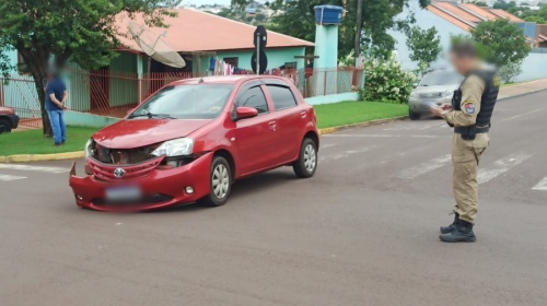 Na tarde desta quarta-feira (19), por volta das 14h00, um acidente envolvendo um veículo Toyota Etios e uma motocicleta Honda CG 150 foi registrado no cruzamento da Rua Portugal com a Rua Itália, no Jardim Bandeirantes, em Toledo.