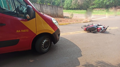 Acidente entre carro e moto deixa mulher com suspeita de fratura em Toledo