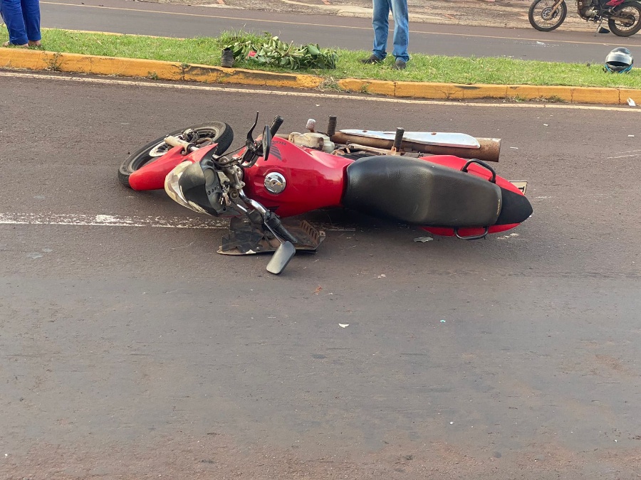 Acidente entre carro e moto na Avenida Maripá deixa motociclista ferido