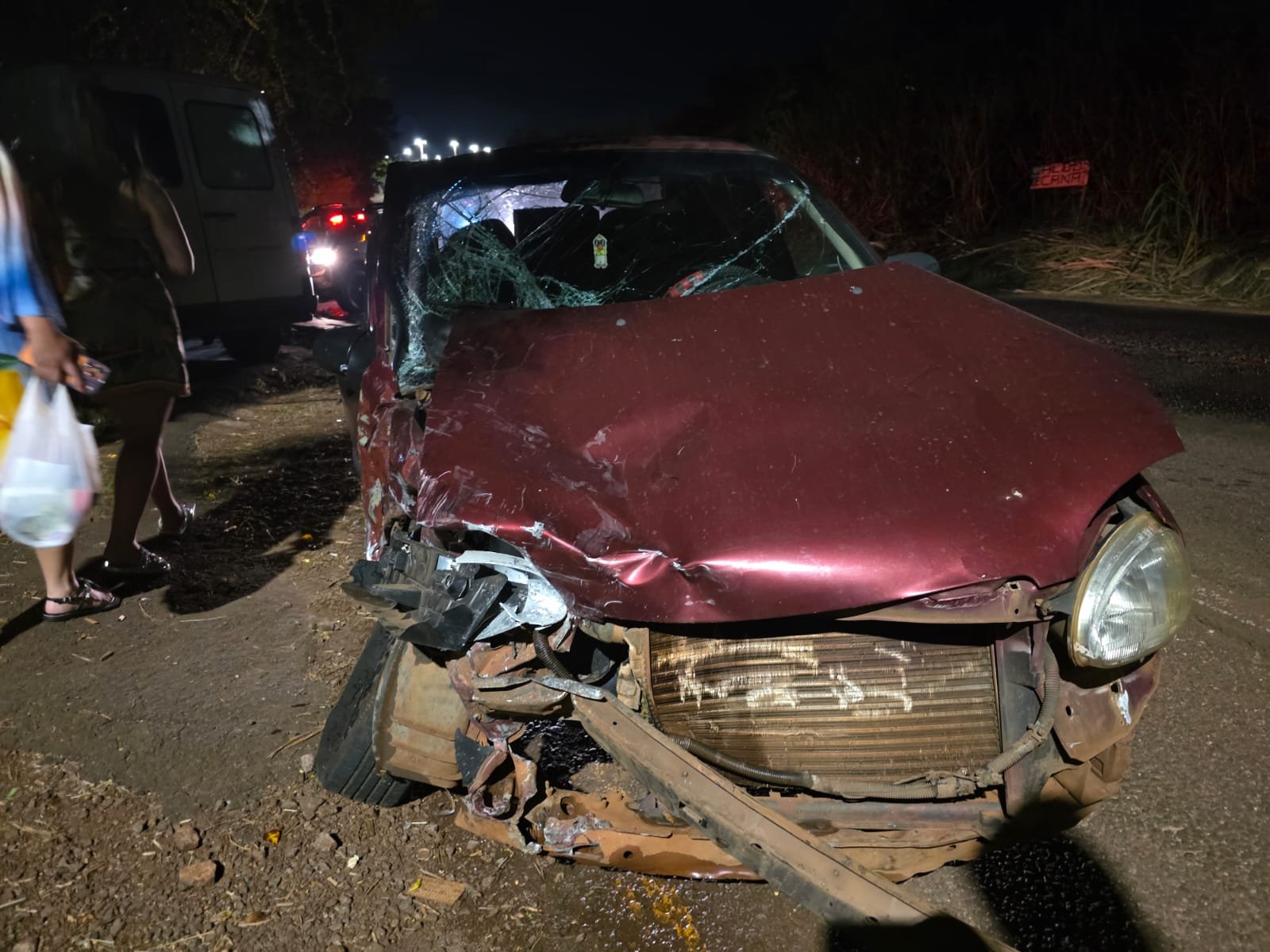 O acidente aconteceu por volta das 19h30. A Frontier seguia no sentido ao Trevo de São Pedro quando o Corsa, que vinha no sentido contrário, cruzou a pista para acessar um estabelecimento comercial. A caminhonete não conseguiu desviar e atingiu o Corsa. O impacto foi forte o suficiente para que a Frontier também acertasse placas do estabelecimento próximo ao local.