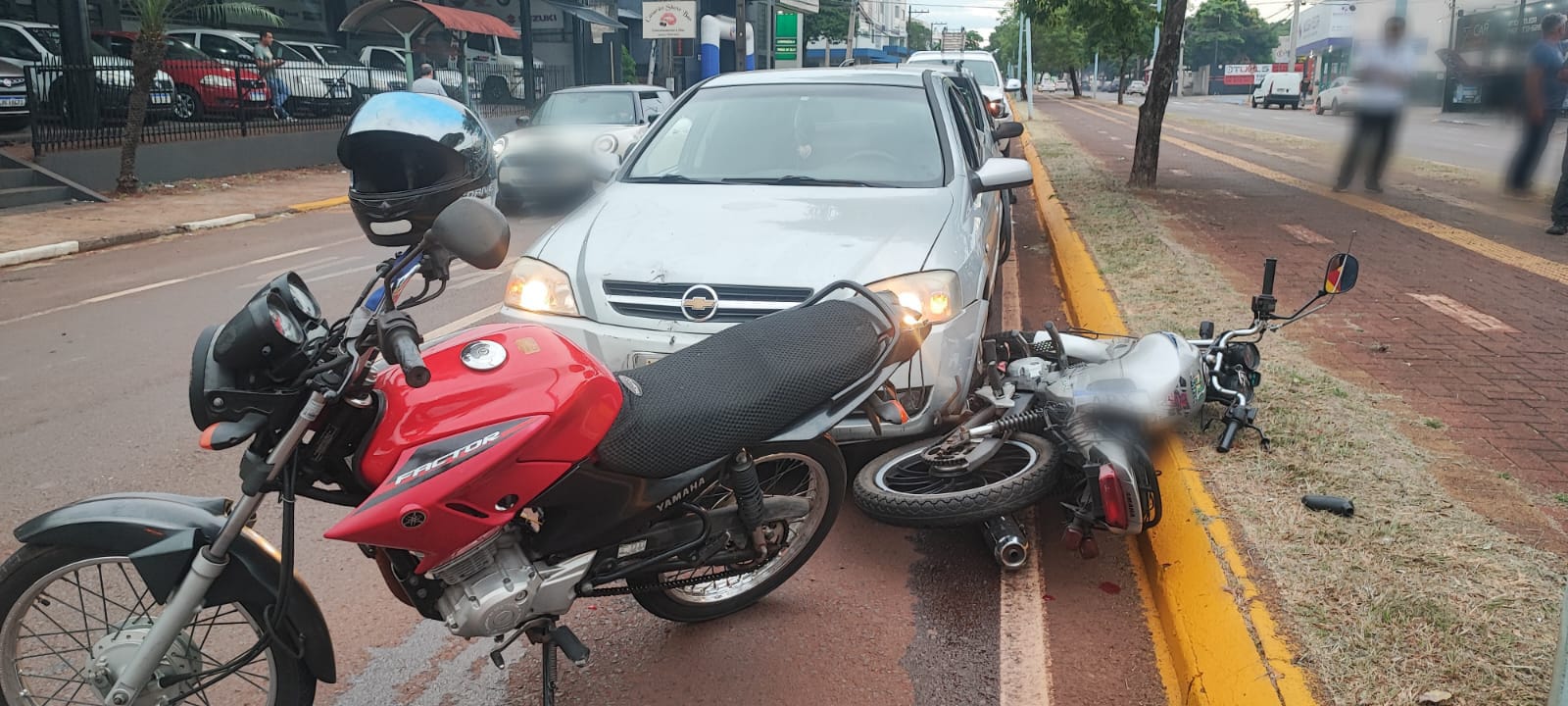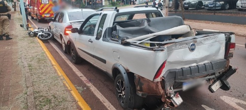 Um acidente do tipo engavetamento, envolvendo três veículos e duas motocicletas, foi registrado no final da tarde desta terça-feira (19), no Centro de Toledo.