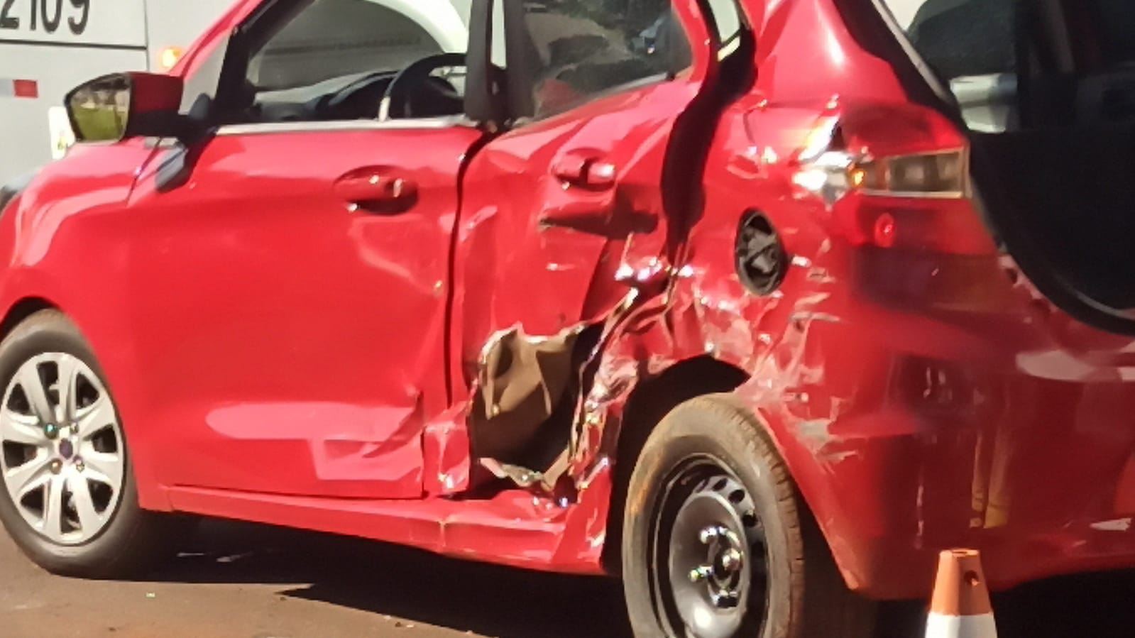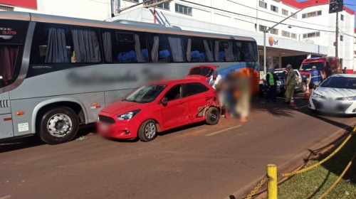 Conforme apurado pela equipe de reportagem do Toledo News, um Ford Ka trafegava em direção ao Centro da cidade quando colidiu lateralmente com um caminhão carregado com frangos. Após o impacto, o carro atingiu um ônibus que estava estacionado no acostamento.
