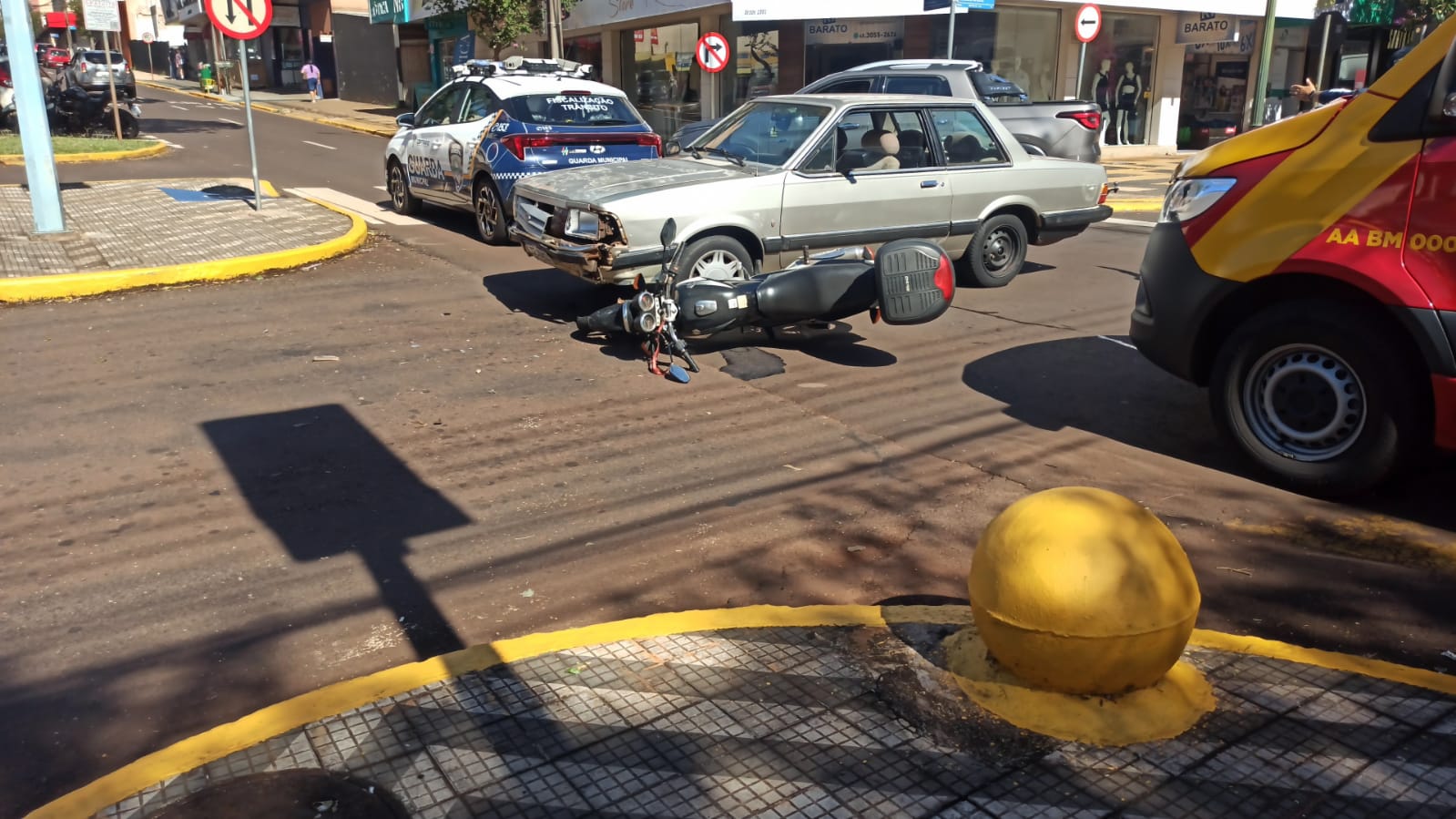 Uma motociclista ficou ferida em um acidente registrado na manhã desta quinta-feira (22), no Centro de Toledo.