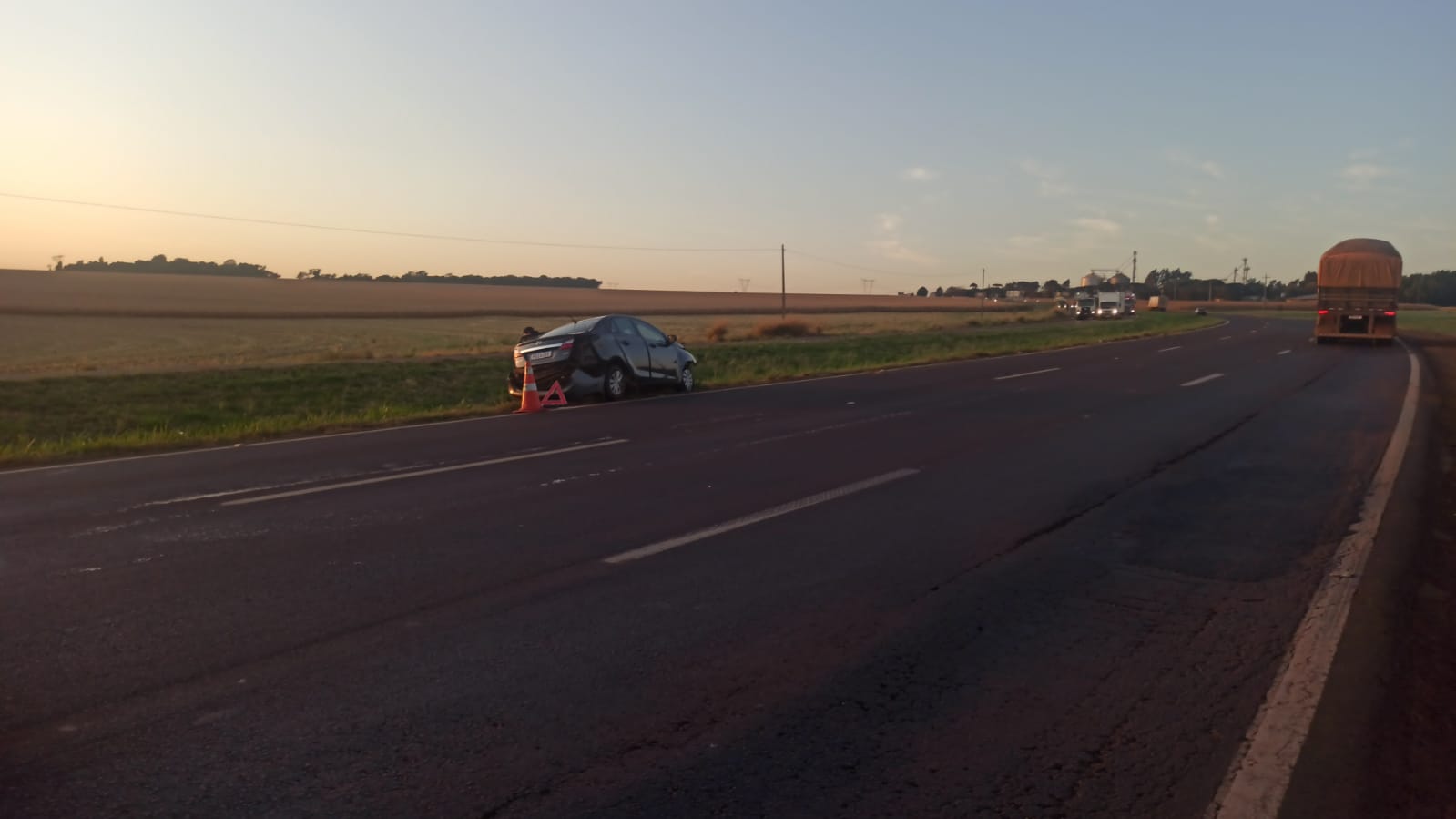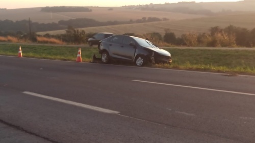 O veículo, um Hyundai HB20, seguia com sentido a Toledo, quando o condutor, de 19 anos, perdeu o controle da direção e saiu da pista, colidindo com o barranco no canteiro que divide pistas.