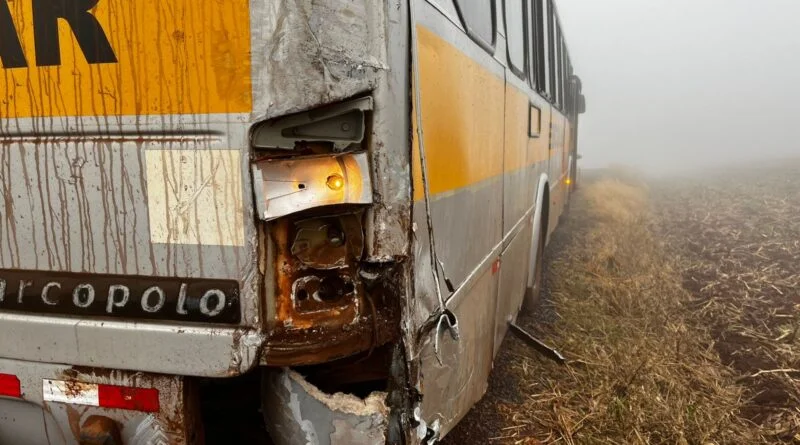 Acidente na BR-163 entre Quatro Pontes e Toledo envolve ônibus, carreta e motocicleta em meio à cerração