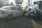 Acidente no Centro de Nova Santa Rosa deixa veículos sobrepostos