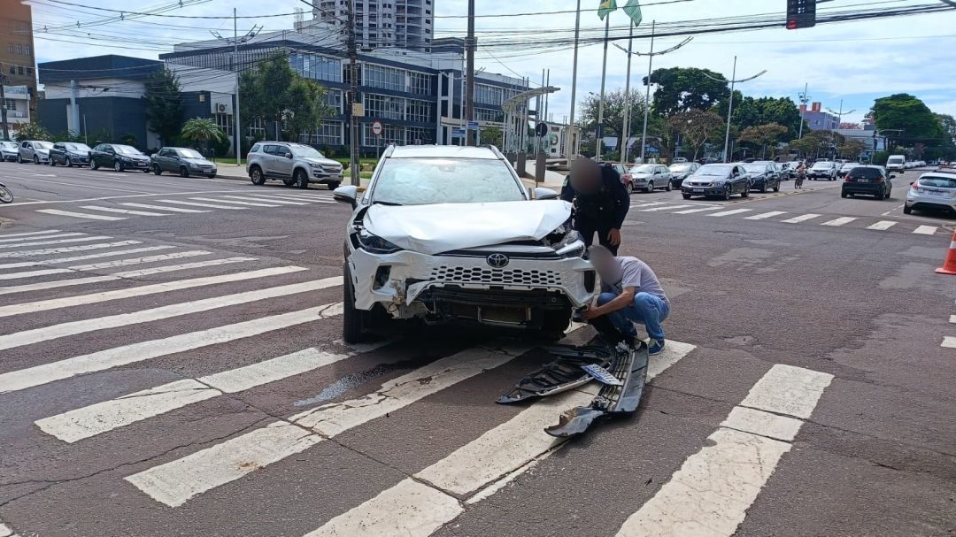 O acidente começou com o impacto entre um Toyota Corolla Cross, que trafegava pela rua Raimundo Leonardi, e um Volkswagen T-Cross, que seguia pela Almirante Barroso.
