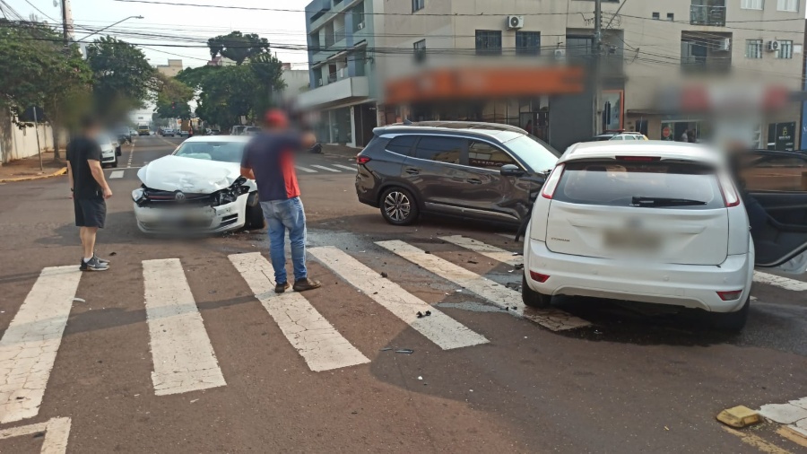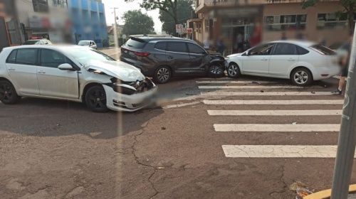 Na manhã desta terça-feira (24), um acidente envolvendo três veículos foi registrado no cruzamento da Rua Santos Dumont com a Rua Piratini, no Centro de Toledo. A batida envolveu um Volkswagen Golf, um Caoa Chery Tiggo e um Ford Focus.