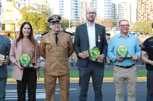 Autoridades civis e militares foram agraciadas com medalhas, moedas comemorativas e troféus. A Associação Comercial e Empresarial de Toledo (ACIT) foi homenageada com a Medalha de Mérito do 19º BPM e a entidade foi representada pelo presidente Cristiano Dall’Oglio da Rocha.