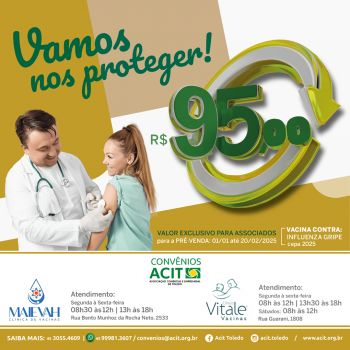 A Associação Comercial e Empresarial de Toledo (ACIT) iniciou através do setor de Convênios, a pré-venda da vacina contra a Influenza Gripe – Cepa 2025.
