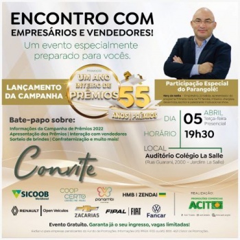 O evento que reunirá empresários e colaboradores associados ao Fundo de Promoções da Acit irá esclarecer detalhes da campanha, como a premiação e datas dos sorteios. Além disso, haverá interação com os participantes, sorteio de brindes e coffe break ao final do evento.