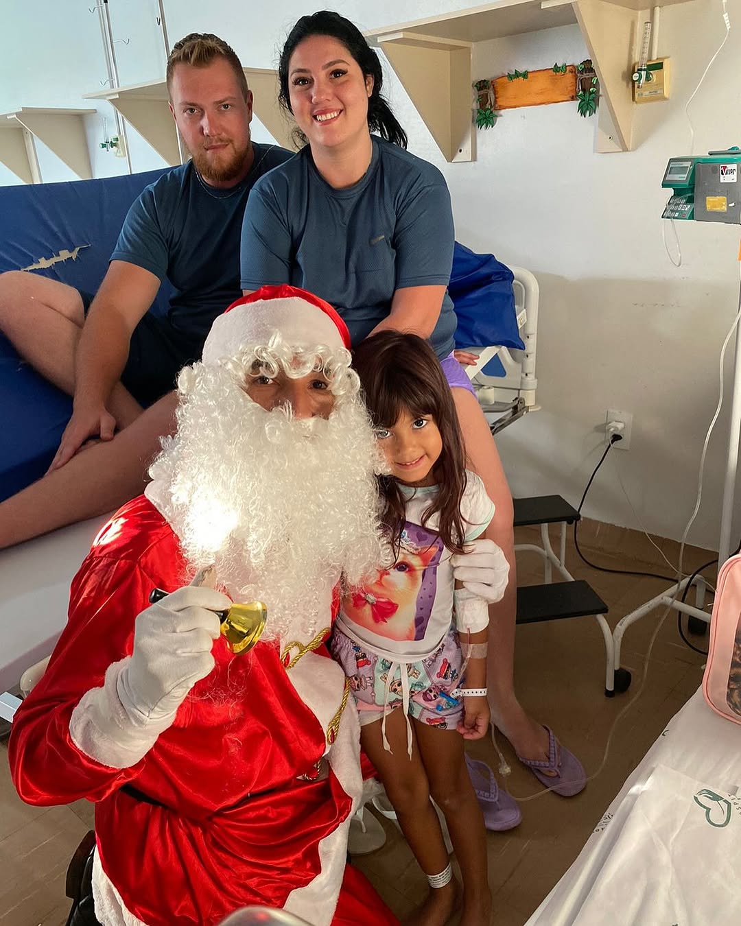 No dia 25, foi a vez do bom velhinho fazer a sua mágica no hospital. O Papai Noel visitou os pequenos pacientes, distribuindo presentes e oferecendo abraços calorosos, como um gesto de carinho e esperança nesta data especial. A ação foi promovida pela Página Exclusivos Toledo, que organizou uma carreata pela cidade e fez questão de levar o espírito natalino até os corredores da Hoesp.