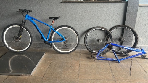 Posteriormente, o adolescente foi encontrado e apreendido. Durante os procedimentos, ele indicou o local onde estaria outro bem subtraído. No ponto informado, os policiais encontraram uma bicicleta desmontada e pneus escondidos em meio à mata, que também foram recolhidos.