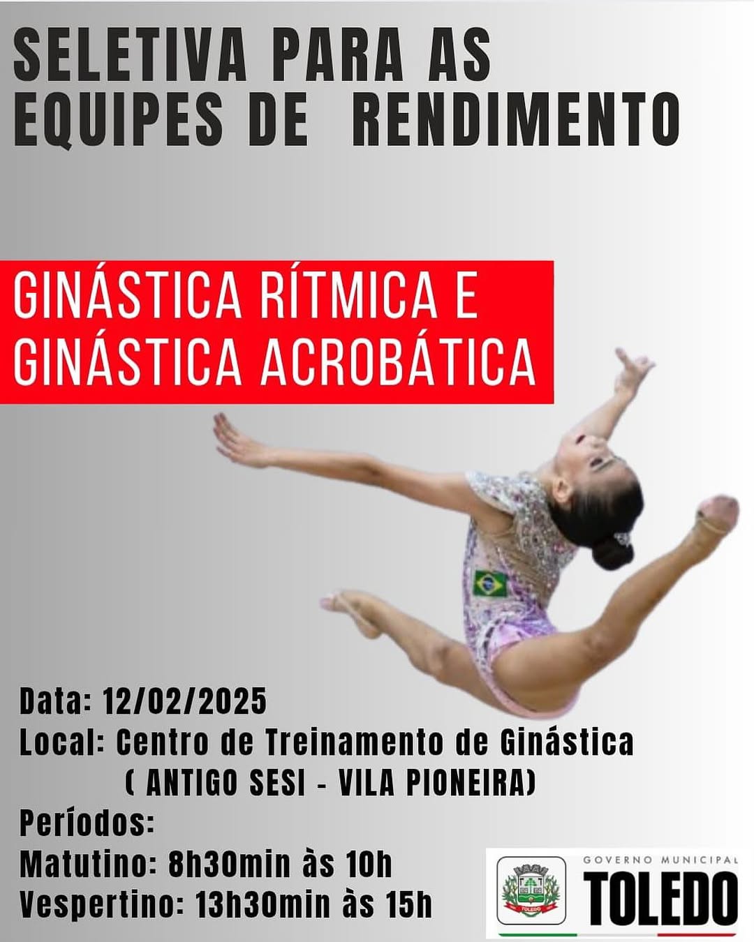 A Associação de Ginástica Toledana (Agito) anunciou a realização da Seletiva de Novas Atletas 2025, proporcionando uma oportunidade única para meninas a partir de seis anos ingressarem no mundo da ginástica rítmica e acrobática (para a ginástica acrobática as vagas são destinadas para meninos e meninas). O limite de idade para participação é de 15 anos.