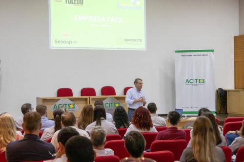 Na manhã desta quarta-feira (30) a Secretaria do Agronegócio, de Inovação, Turismo e Desenvolvimento Econômico (Agrodesenvolvimento) realizou uma palestra na sala de reuniões da Associação Comercial e Empresarial de Toledo (ACIT) para a capacitação de contadores do município e região. As orientações foram sobre o sistema de abertura de empresas que é utilizado em Toledo, a RedeSim, a qual recebeu uma reformulação. O evento contou com a presença de cerca de 80 profissionais no ramo da contabilidade