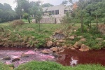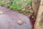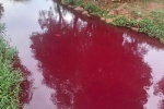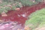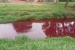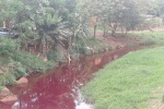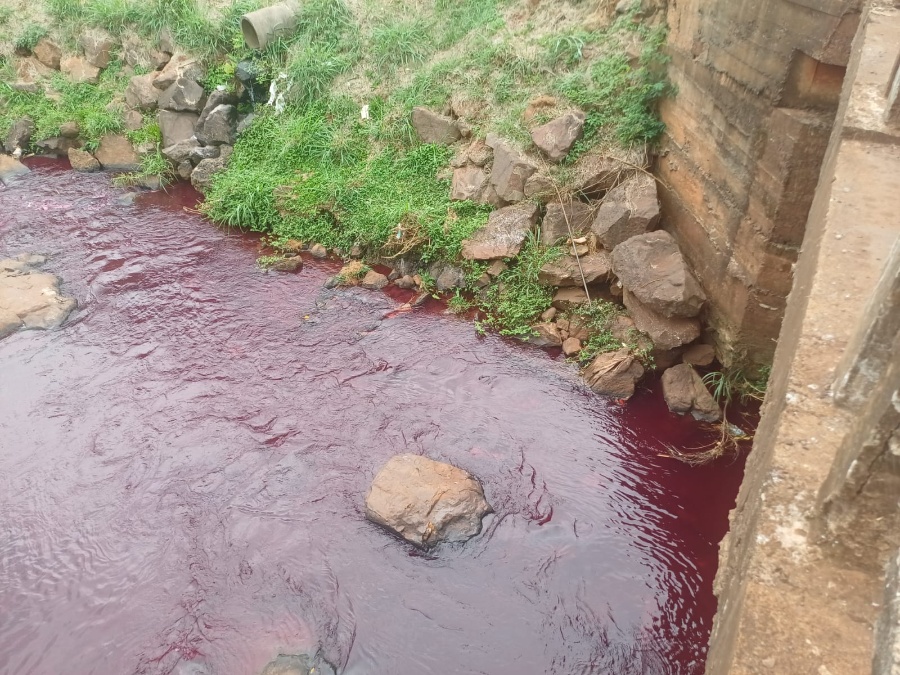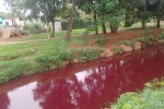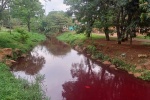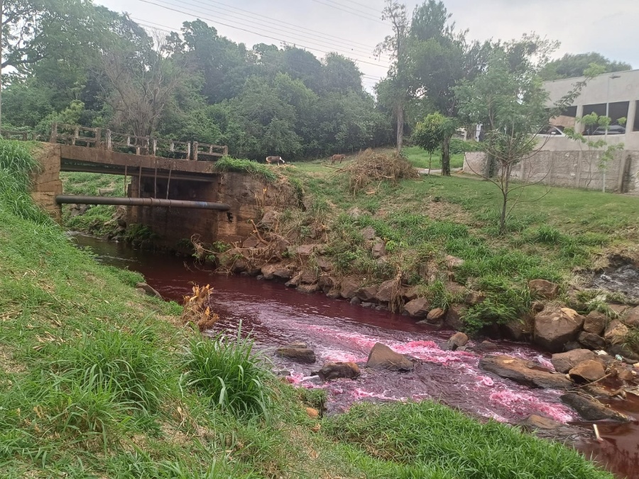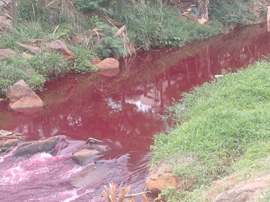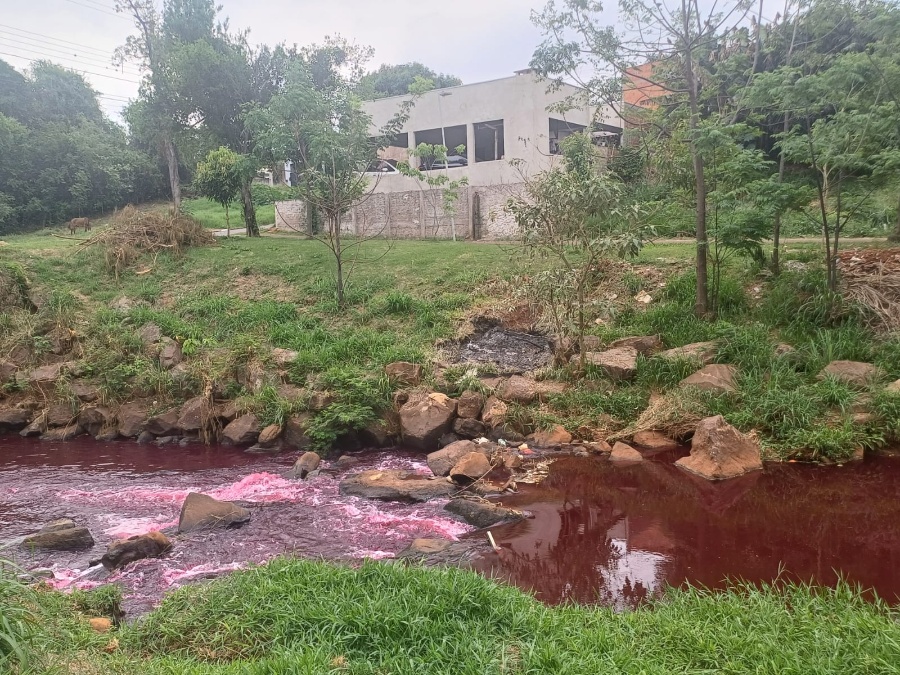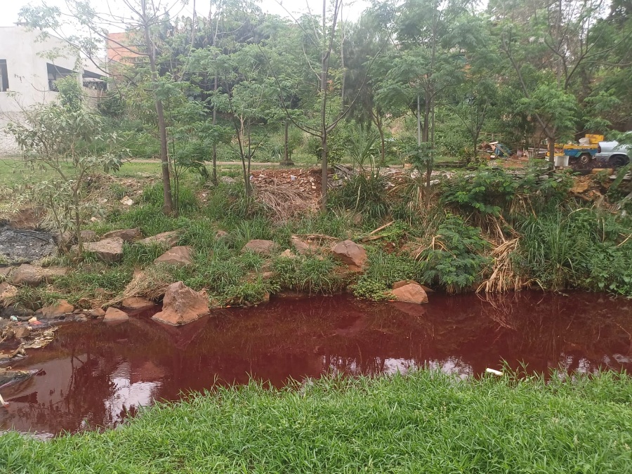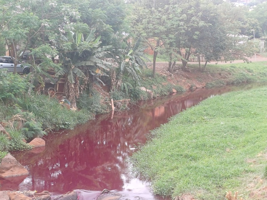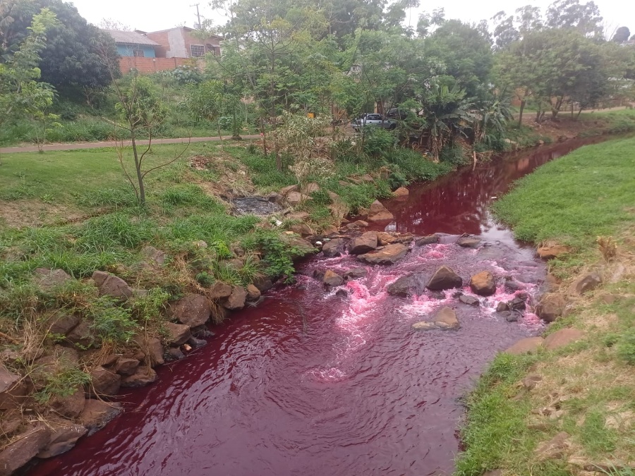 O rio apresenta uma coloração avermelhada intensa, gerando preocupação e curiosidade na população local, que registrou e compartilhou imagens do fenômeno.