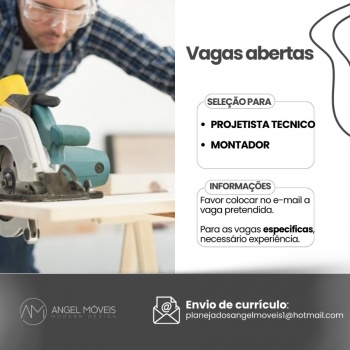 A Angel Móveis, situada em Toledo, está com vagas abertas para compor a sua equipe. As oportunidades disponíveis são para os cargos de Projetista Técnico e Montador.