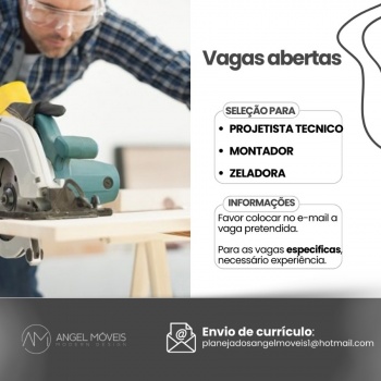 A Angel Móveis, situada em Toledo, está com vagas abertas para compor a sua equipe. As oportunidades disponíveis são para os cargos de Projetista Técnico, Montador e Zeladora.