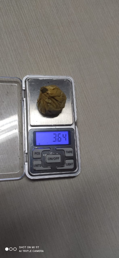 Durante a abordagem, o jovem resistiu à ordem de colocar as mãos sobre a cabeça, alegando que os guardas "não eram policiais". Após insistência, ele acatou a ordem e, durante a revista pessoal, foi encontrada em sua jaqueta uma porção de substância semelhante à maconha, pesando cerca de 3,64 gramas, embalada em plástico amarelo e acompanhada de papel seda.