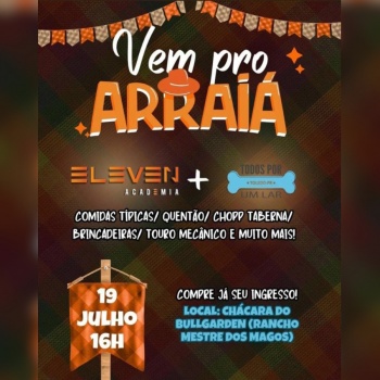 A Eleven Academia convida toda a comunidade para curtir um arraiá pra lá de especial no dia 19 de julho, próximo sábado, em um clima de festa, alegria e solidariedade. O evento começa a partir das 16h00 e será realizado na Chácara do Bullgarden (Rancho Mestre dos Magos), prometendo muita diversão!