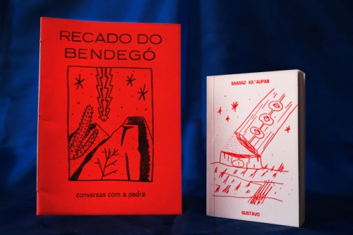 “Baaraz Kau’Apan” significa “campo em chamas”, em língua Wapichana. Caboco questiona, a partir dessa publicação, “que campos são esses que continuam em chamas, pensando a presença indígena, a nossa historiografia, as nossas produções de conhecimento e a nossa subjetividade?”. Para ele, “as chamas-chamados nos convocam a pensar para além da ideia da tradição-museu e a busca com essas publicações é contribuir no processo de demarcação das subjetividades indígenas”. “Recado do Bendegó: conversas com a pedra” é um registro ilustrado de conversas com o meteorito do Bendegó, que atualmente está no acervo do Museu Nacional do Rio de Janeiro, mas que veio do sertão baiano, nas proximidades do Monte Santo.