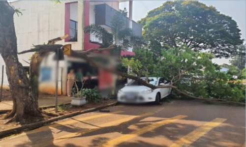 Na tarde da última quarta-feira, 25, por volta das 15h05, a Guarda Municipal (GM) de Toledo recebeu uma denúncia informando que uma árvore havia caído sobre um veículo na Rua Santos Dumont, no na Vila Industrial. A equipe K9 da GM foi deslocada ao local e, ao constatar a situação, foi necessário interditar a via em ambos os sentidos para garantir a segurança dos moradores e motoristas.