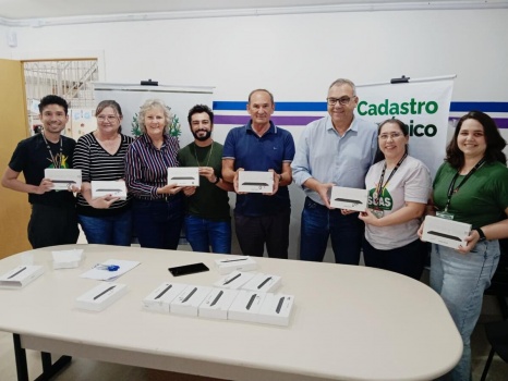 O prefeito Mario Costenaro e o vice-prefeito Lucio De Marchi entregaram, nesta quinta-feira (23), 16 novos tablets. Destes, 13 serão usados pelos entrevistadores do Cadastro Único para Programas Sociais (CadÚnico) dos Centros de Referência de Assistência Social (Cras), 2 irão para a equipe de abordagem e 1 para o Departamento de Vigilância Socioassistencial.