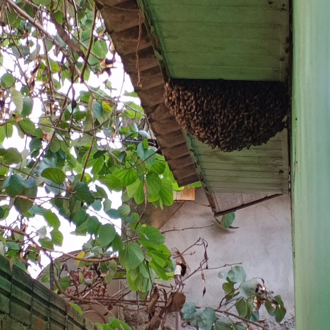 A orientação é que, em situações semelhantes, a população evite tentativas de remoção por conta própria e acione os serviços competentes, já que enxames podem se tornar agressivos e representar risco para pessoas e animais.