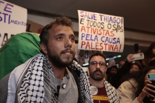 A embarcação, que foi interceptada em 9 de junho, partiu da Itália levando alimentos e medicamentos, com o objetivo de furar um bloqueio imposto por Israel ao território palestino, que há mais de três meses impõe fome a quase 2 milhões de pessoas. Thiago chegou ao Brasil na manhã da última sexta-feira (13) e foi recebido por familiares e apoiadores no Aeroporto Internacional de São Paulo, após sua prisão em Israel.