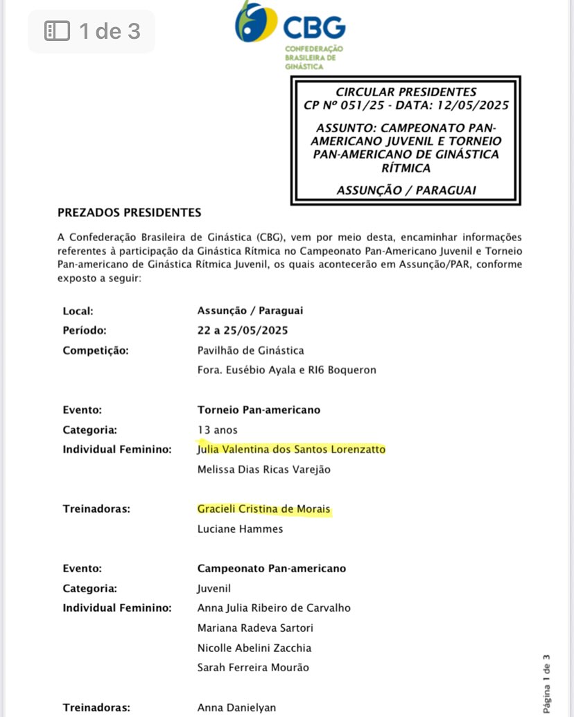 A Ginástica Rítmica (GR) de Toledo mais uma vez se destaca no cenário esportivo com a convocação da atleta Júlia Lorenzatto e da treinadora Gracieli Morais para representar o Brasil na Copa Pan-americana Juvenil. A competição, que reúne os principais talentos do continente, será realizada entre os dias 20 e 25 de maio, em Assunção, no Paraguai, na Categoria 13 anos.