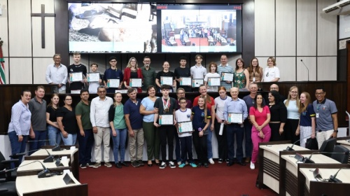 Foram reconhecidos atletas, professores, estudantes e instituições que se destacaram em suas áreas e contribuíram para o desenvolvimento do município. O vereador Sergio Japonês (PL) e Júnior Weiller, coordenador de programas da Secretaria Estadual de Desenvolvimento Social e Família, acompanharam as homenagens.